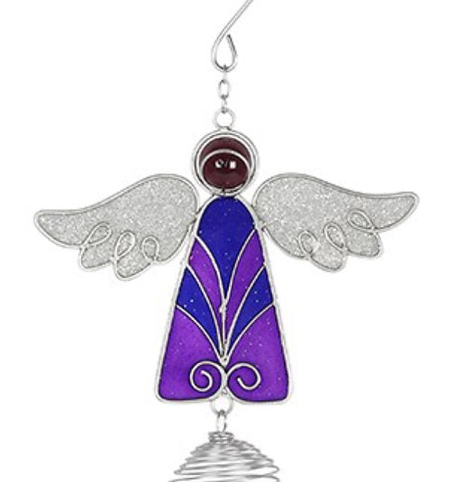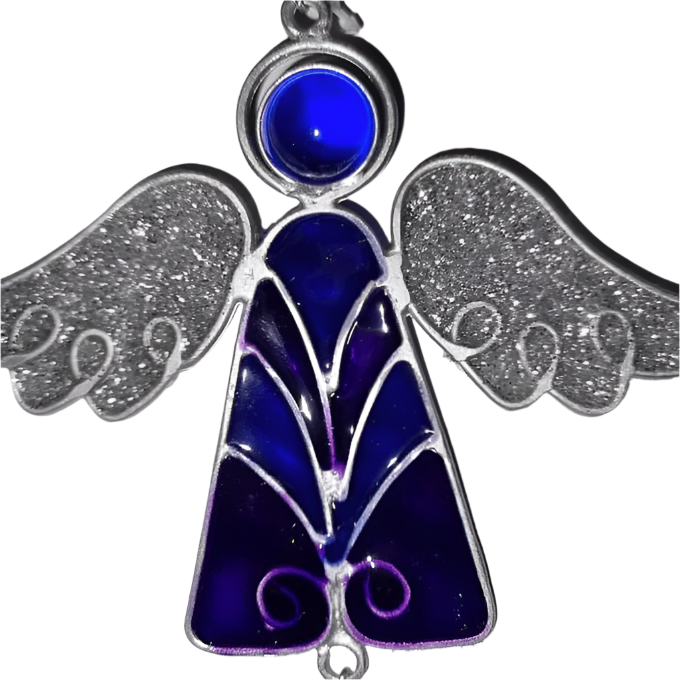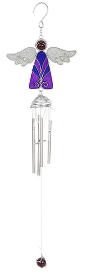 Beautiful angel wind chime with a blue body and glittery silver wings. Made with metal and resin, makes a relaxing sound in the wind. Suitable for indoor or outdoor use.