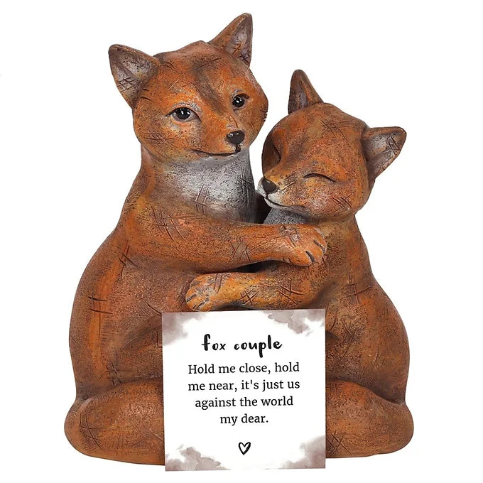 This Fox Couple ornament shows a loving embrace between two resin foxes. A great representation of love and relationships, making it a perfect gift for weddings, anniversaries and Valentine's Day. Each ornament comes with a designed gift box and a printed sentiment card which reads, 'Hold me close, hold me near, it's just us against the world my dear'.