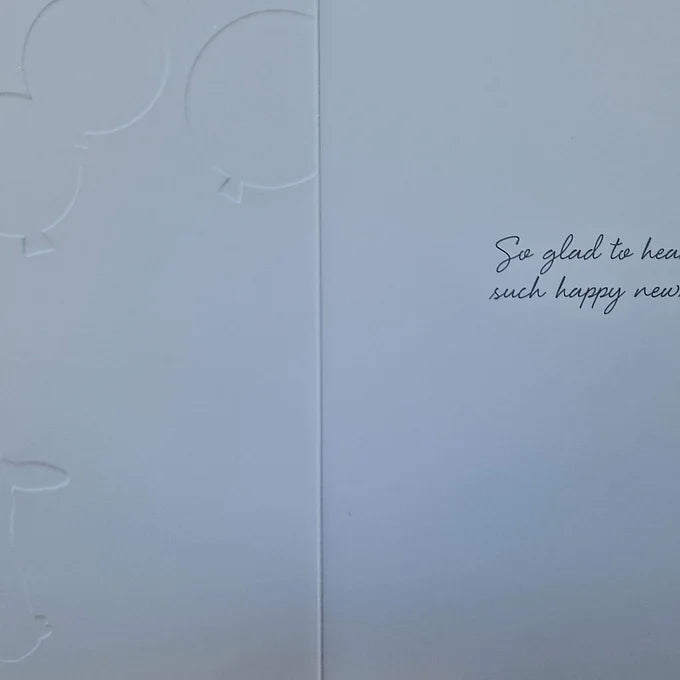 Baby Boy card with balloons, hearts, stars, and silver lettering and glitter.