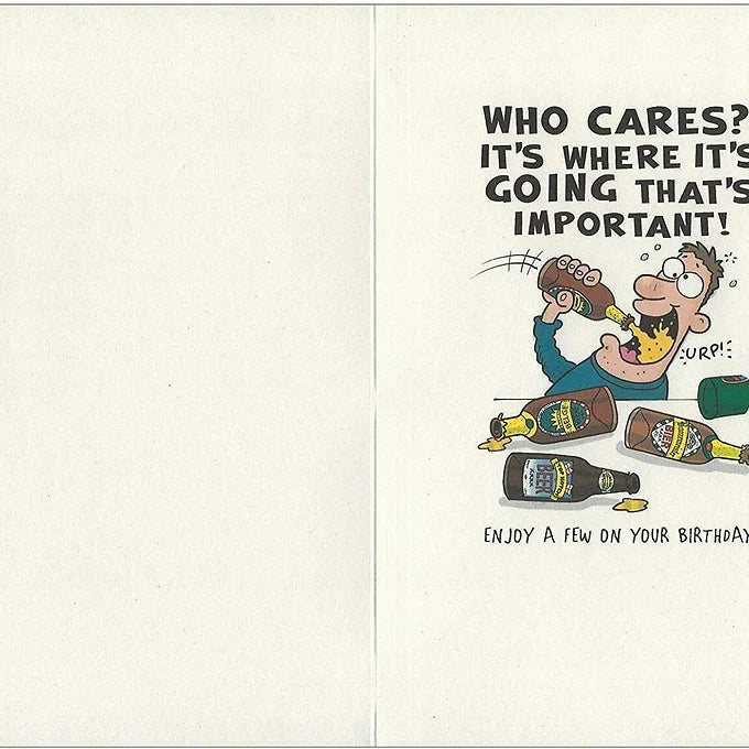 Greetings: Who cares? It's where it's going thats important! Urp! Enjoy a few on your birthday!