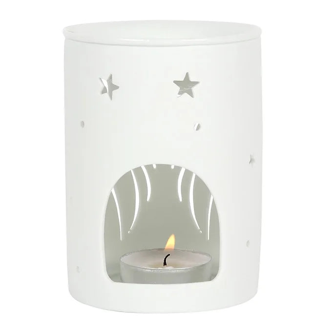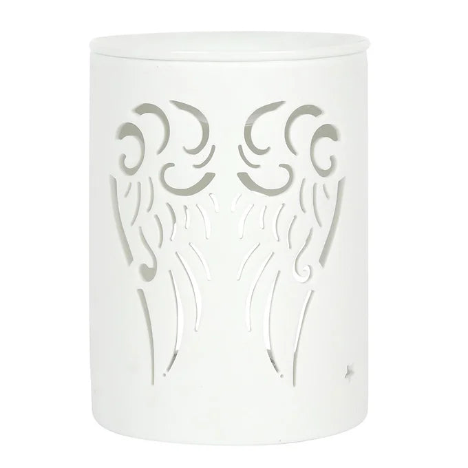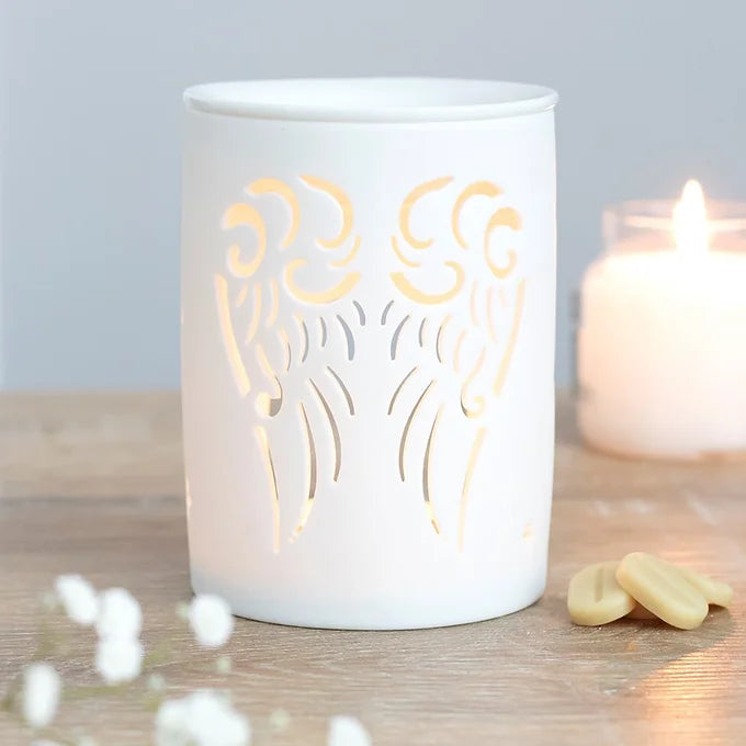 This white ceramic oil burner features cut out angel wings in a cute, contemporary design. Place fragrance oil or wax melts into the built-in dish with a standard tealight inside to fill the home with calming fragrance.