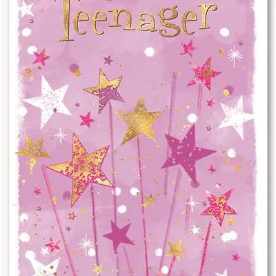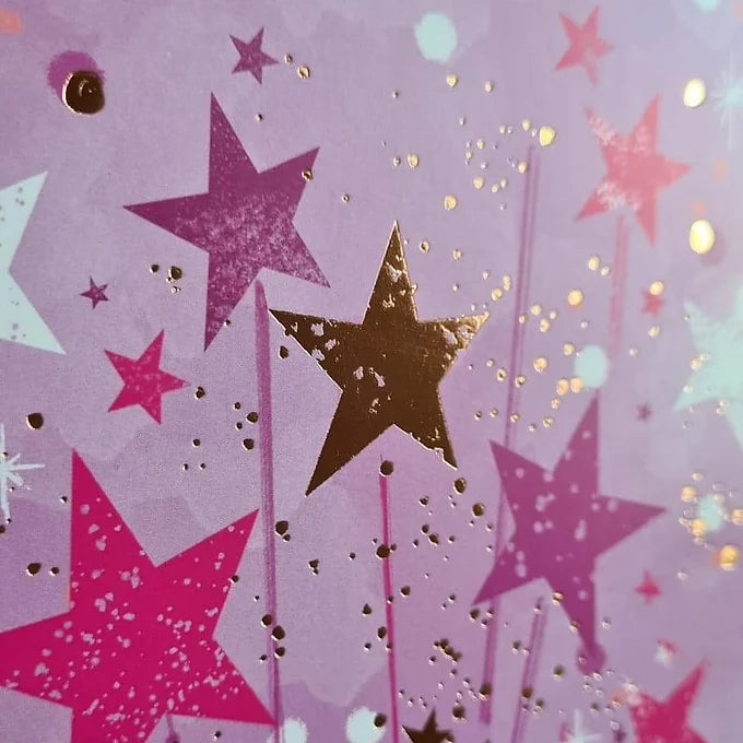 Lots of stars in pink, white, purple and some gold foil to match the gold foil lettering.