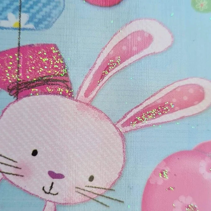 Cute happy rabbits with their balloons on the number three with some glitter elements.