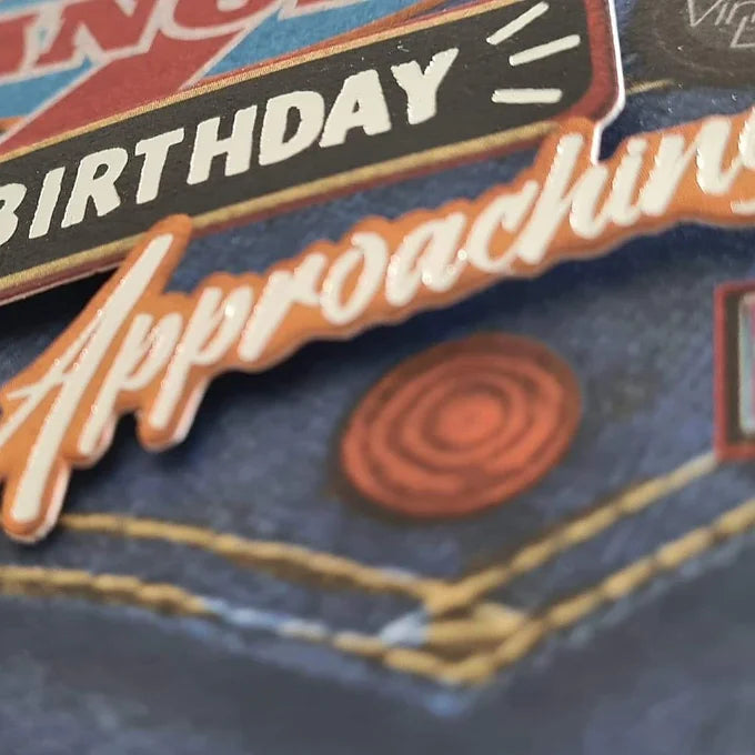 Birthday Denim Card. Denim Shirt with birthday badges.