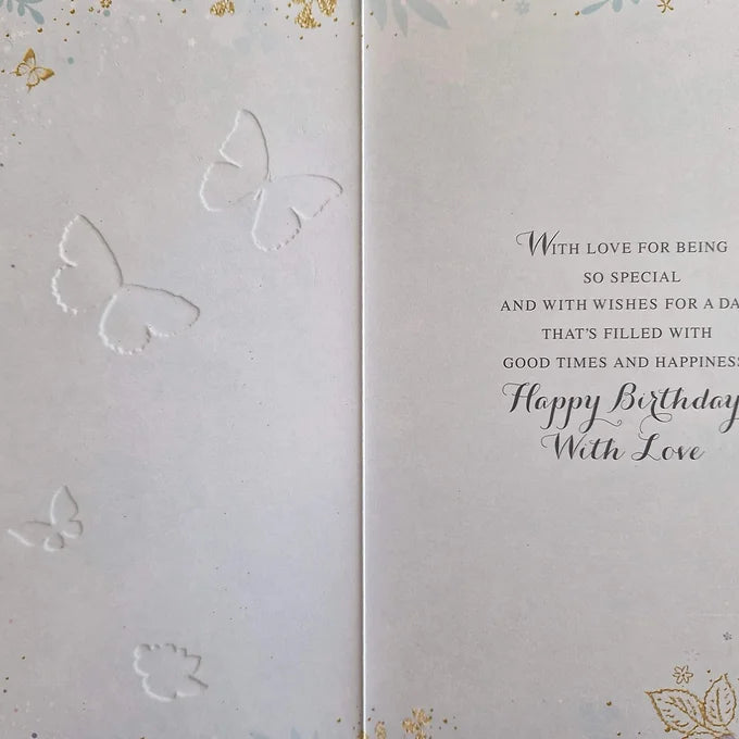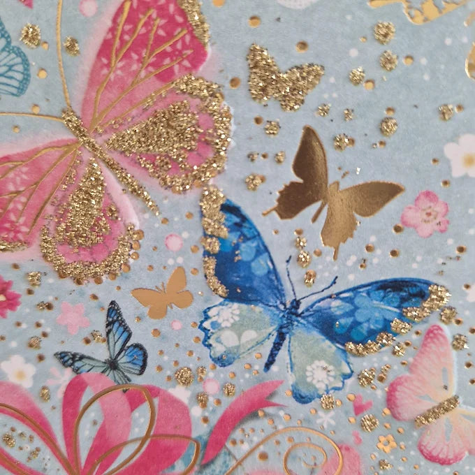 Flowers, Butterflies, Gift, with Glittery Gold foiled design.