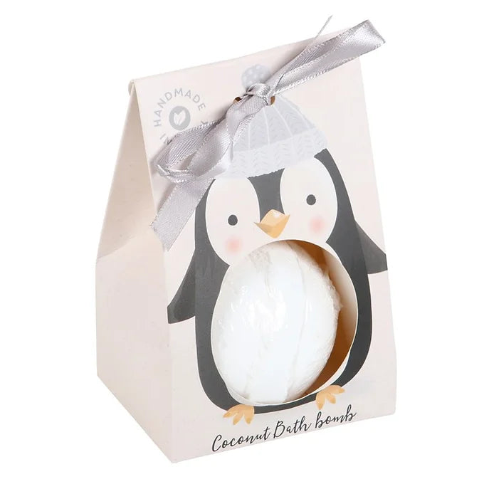Warm up after a cold romp in the snow with this coconut bath bomb. Presented in an adorable penguin box with a silver bow, making it perfect for gifting over the Christmas and winter season. Vegan and handmade in the UK.