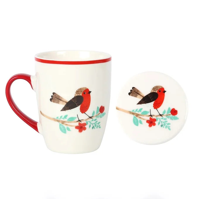 This ceramic mug and coaster gift set features an adorable robin illustration and a contrasting red handle. Comes in a matching gift box that's ready for gifting. Dishwasher and microwave safe.