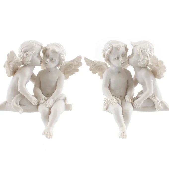 A pair of beautiful Cherub shelf sitter ornaments which look peaceful and serene and offer a unique way to decorate shelves and mantels. Would make a perfect addition to your home, or as a gift.