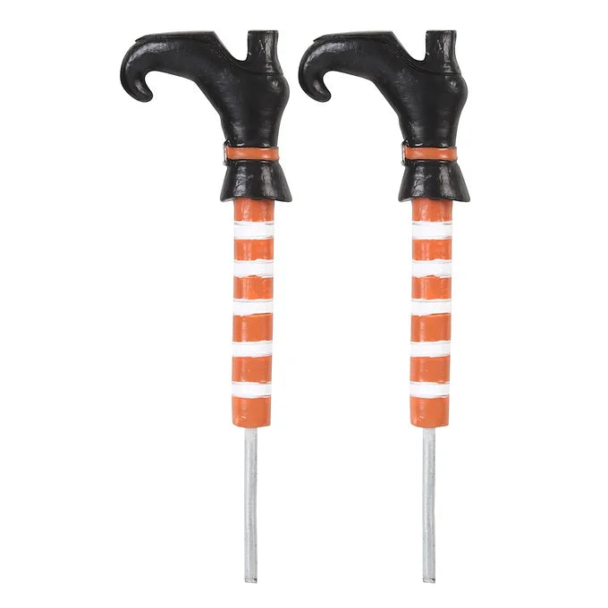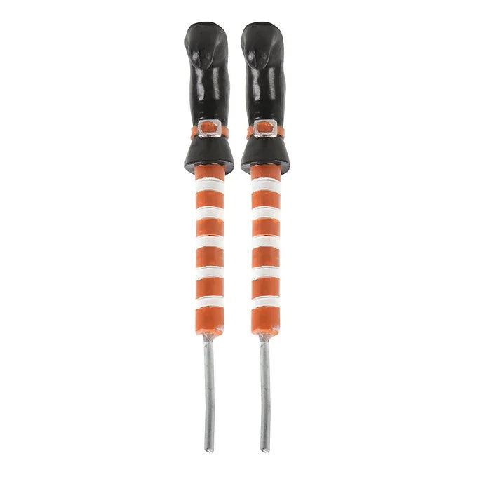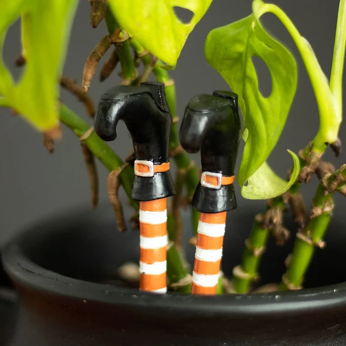 Add a touch of whimsy to any plant pot, planter or garden bed with this pair of spindly witch's legs. With orange and white striped socks peeking out of black boots, these ornaments are sure to bewitch plants both inside and out. The perfect gift for any eclectic gardener!