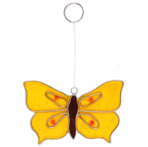 This lovely Yellow Brimstone butterfly suncatcher provides a delightful way to decorate gardens, windows and conservatories. The suncatcher is made from resin and has a short string and loop for easy and convenient hanging.