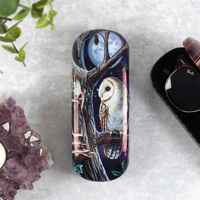 This striking glasses case features the fairy and owl art design 'Fairy Tales' by artist Lisa Parker. This glasses case also comes with a handy cloth for cleaning glasses and features a metallic gold Lisa Parker logo printed on the inside. Other designs available.