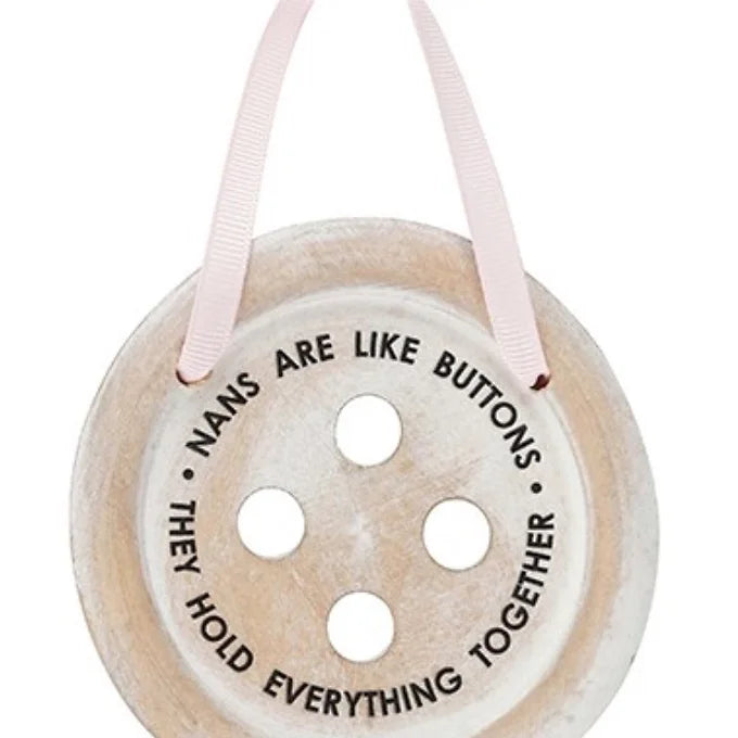 This is an adorable button sign that features a sentimental phrases for Nan in a shabby-chic, whitewashed finish.