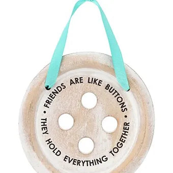 This is an adorable button sign that features a sentimental phrases for Friends in a shabby-chic, whitewashed finish.
