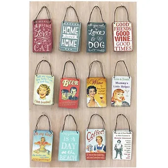 Small metal plaque with a retro and vintage style design and a fun slogan to make you smile. The sign has a metal hanging wire for placement.