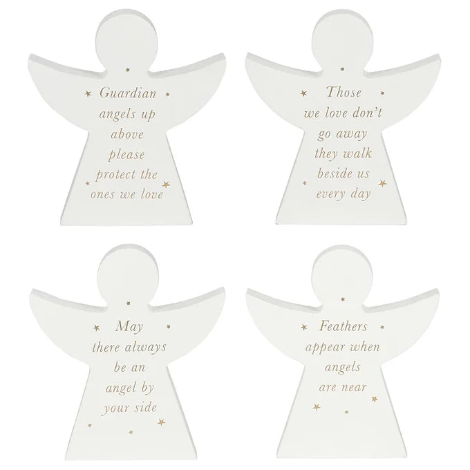 A Guardian Angel which features a meaningful gold metallic phrase surrounded by a sprinkling of gold stars. They are sure to bring comfort and reassurance for those in need of an extra dose of care.