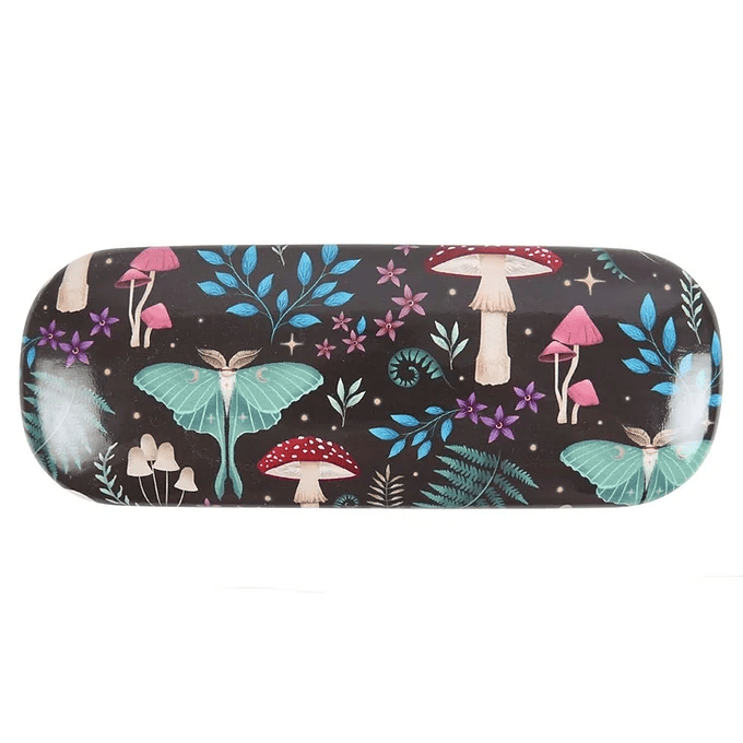 A hard shell glasses case featuring an all-over mystical forest print featuring mushrooms, moths and magickal plants. Includes a microfibre cleaning cloth for removing dust and smudges. Part of the Dark Forest range of mystical woodland gifts and home decor.