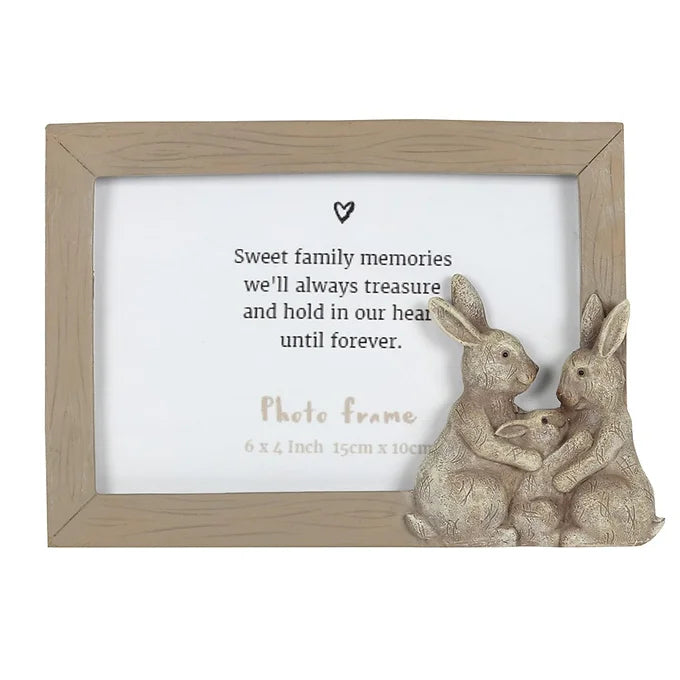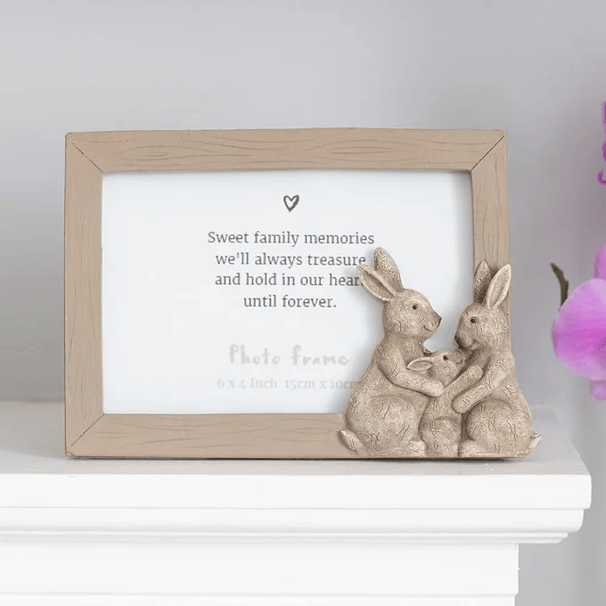 This adorable 'Fluffle Family' bunny photo frame is the perfect accessory for holding a picture of a treasured family moment. The frame holds a sweet sentiment which reads 'Sweet family moments we'll always treasure and hold in our heart until forever' which can be replaced with a standard 6x4 inch photograph
