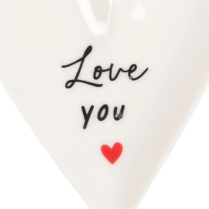 Keep rings, earrings and other small treasures in one place with this charming trinket dish. Shaped like a heart and featuring simple 'Love You' text, this small decor piece is both practical and thoughtful for Valentine's Day, Mother's Day, anniversaries and more.
