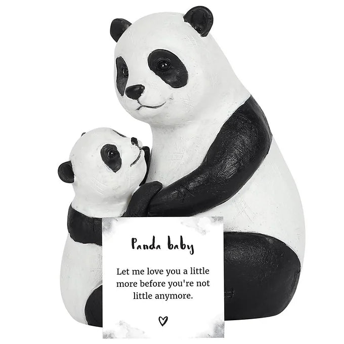 This Mother and Baby Panda ornament shows a loving cuddle between a mother and baby. A sweet representation of the bond between mother and child, making it a perfect gift for new mums. Each ornament comes with a designed gift box and a printed sentiment card which reads, 'Let me love you a little more before you're not little anymore'.