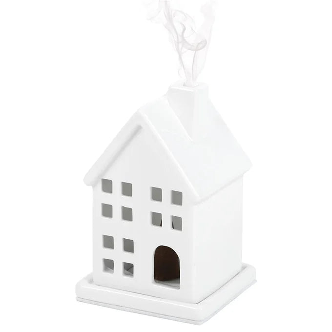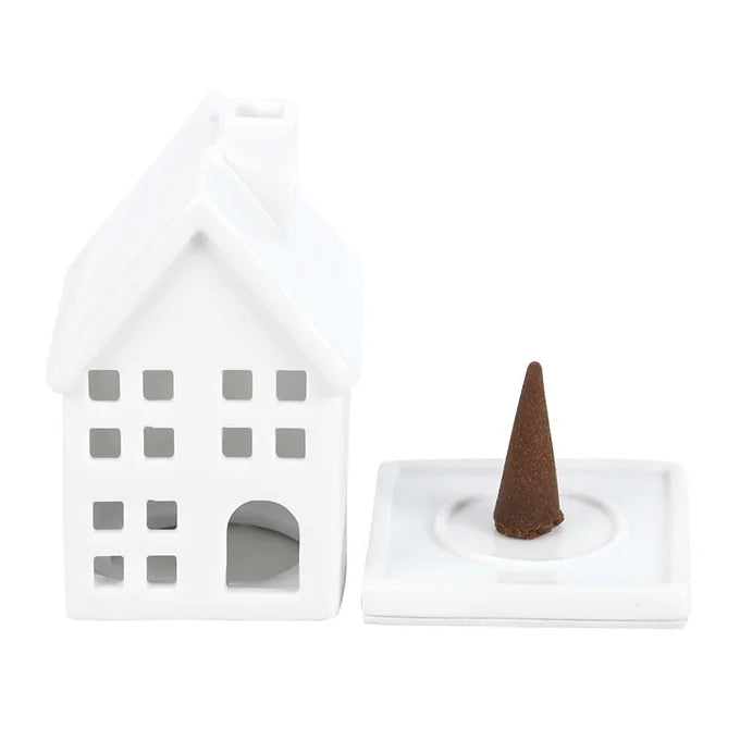 Awaken your senses with this ceramic incense cone holder shaped like a house. Simple and timeless in design, this ceramic holder will look charming on a side table or nightstand while fragrancing the air.