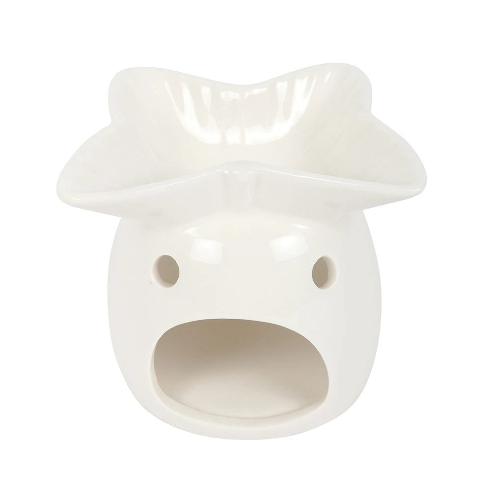 This elegant white ceramic oil burner features a butterfly-shaped bowl topper, adding a delicate decorative touch while holding fragrance oil during use. Designed in a soft, sculptural style with a classic silhouette, it's perfect for creating a calming and thoughtful atmosphere in the home. Recommended for use with fragrance oil diluted with water. Never use undiluted oil. Never leave a lit candle unattended. Part of the White Butterfly collection of sentimental gifts and home decor.
