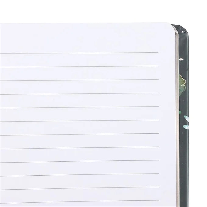 Whether used for notes, lists, or journaling, this beautiful A5 notebook will elevate your desktop with a serene pond-inspired design with frogs, lily pads, dragonflies and koi fish. This notebook is accented by gold foil pages and a mint green ribbon page marker. Includes 100 sheets / 200 lined pages.