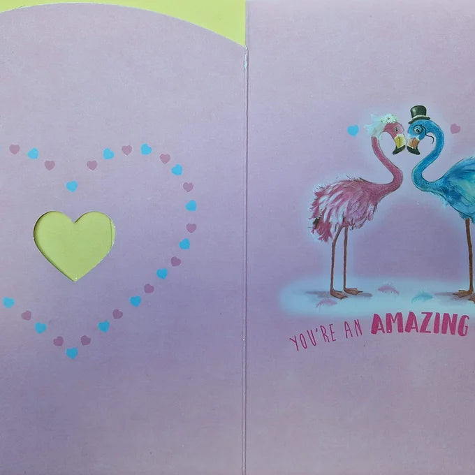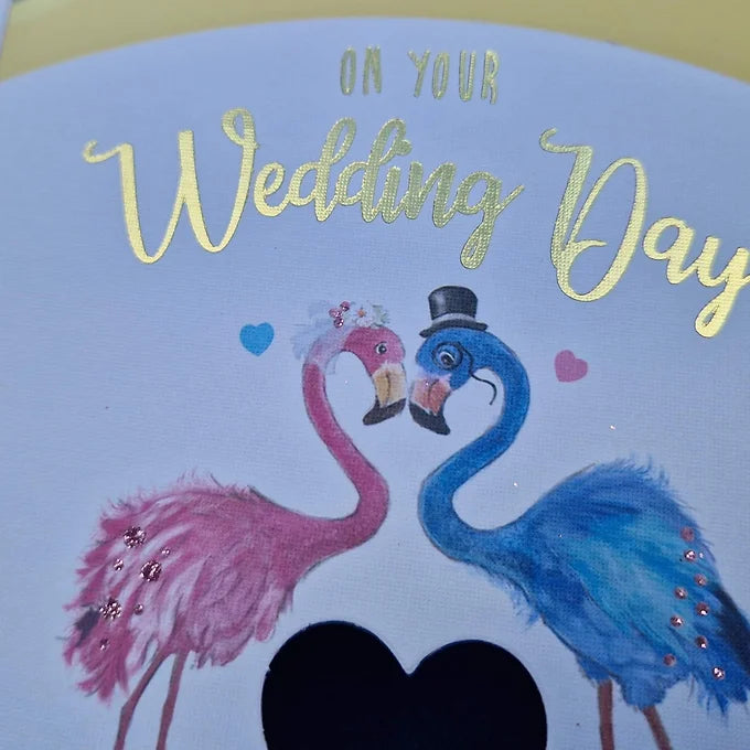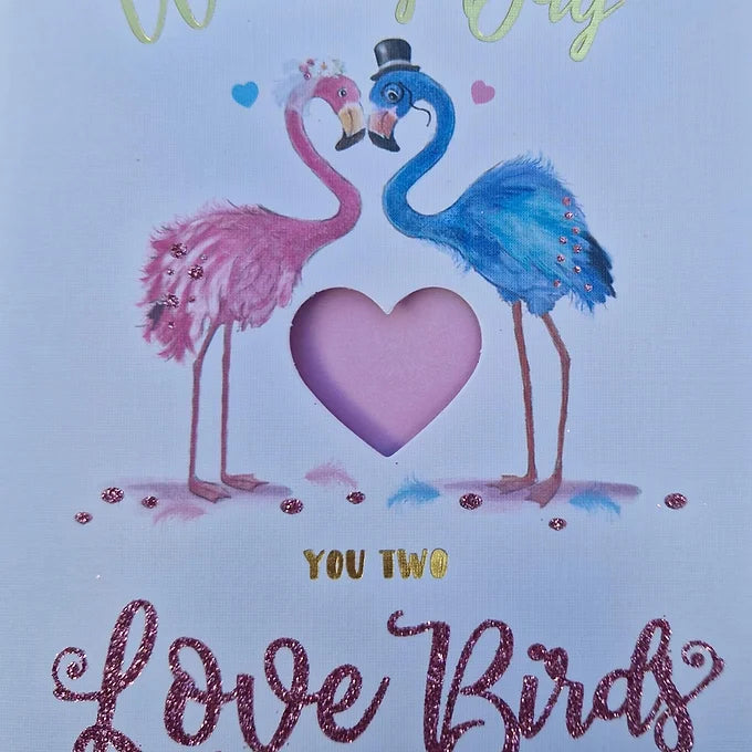 Wedding Day Card, Marriage, Mr & Mrs, Flamingos, Love Birds