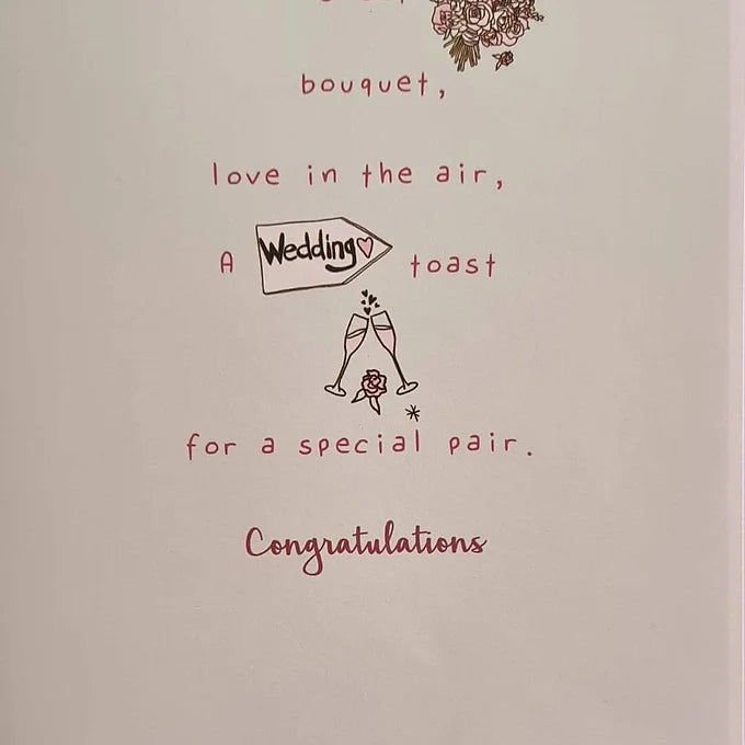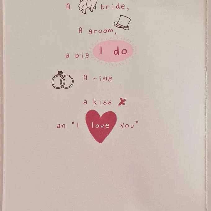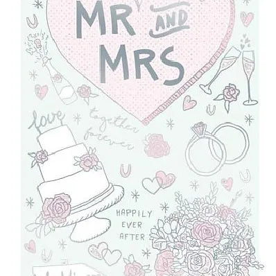 Happy Wedding Day Card with Mr & Mrs on the front with silver foil design on pastel green and pink.