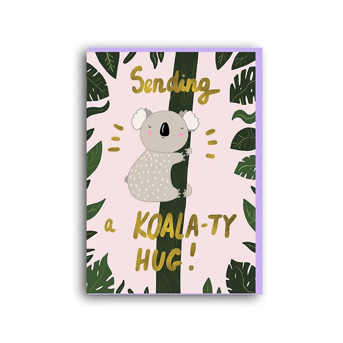 Koala Hugs Card with gold foiled elements on top.Birthday, Thinking of You, Sympathy, Friendship.