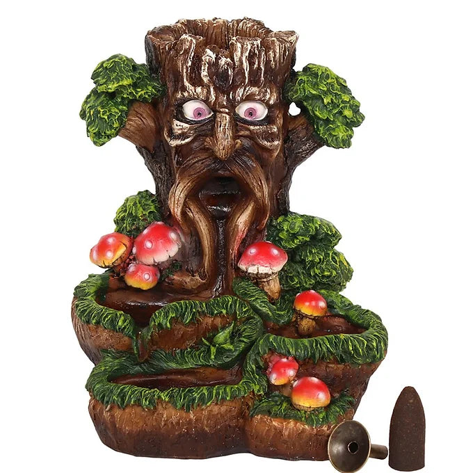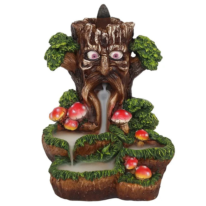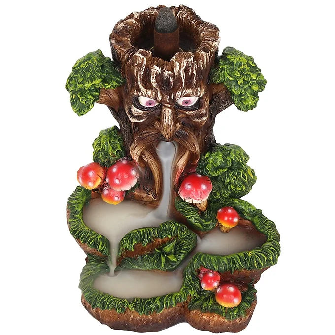 An intricate and colourful backflow incense burner in the Tree Man design. When the cone is lit the smoke from the cone cascades downwards in a mesmerising waterfall effect to pool at the bottom. Beautiful to watch.