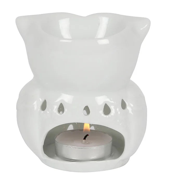 Charming white owl oil burner which looks beautiful when a lit tealight is placed inside. This burner has a deep bowl making it perfect for using with oils to fragrance the home. This item can also be used as a wax melt burner however it is advisable to consider the size and depth of the bowl when adding wax to ensure it will not overrun the edges when melted.